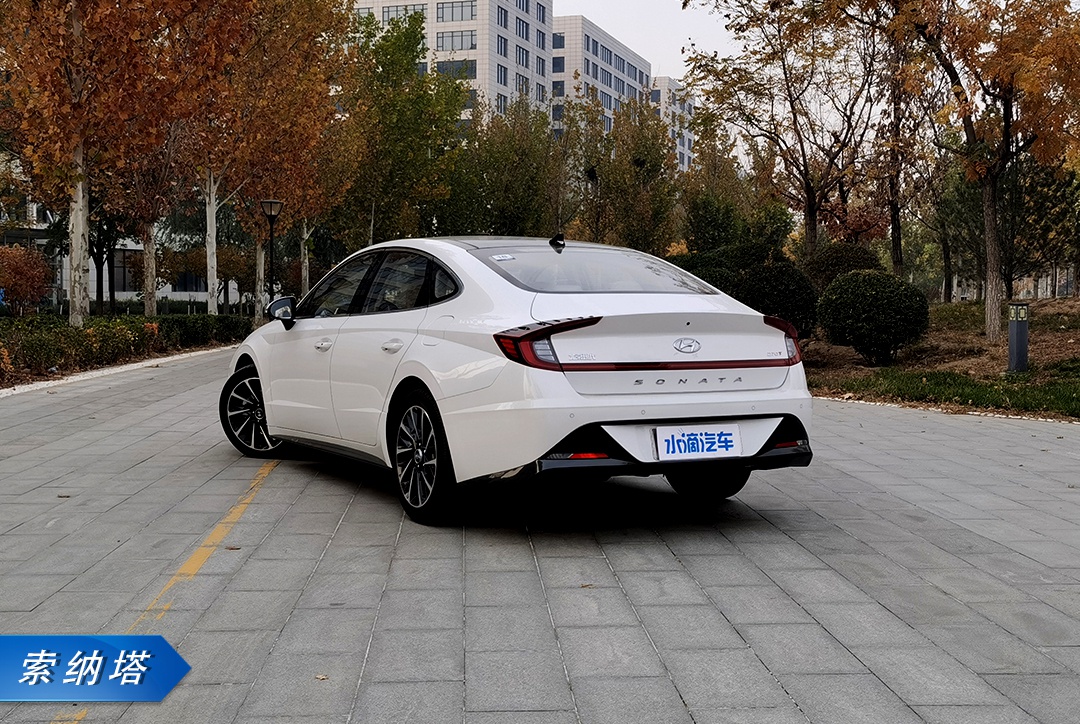 转到车身侧面,双腰线造型贯穿车身,营造出流畅质感,结合溜背式车顶设计,进一步拉伸整车侧面的横向视觉效果。另外车身的前唇、侧裙以及尾部下侧都被黑色的材质勾勒,视觉反差做得到位。车尾部分,第十代索纳塔采用贯穿式尾灯设计,点亮后视觉效果更显时尚。