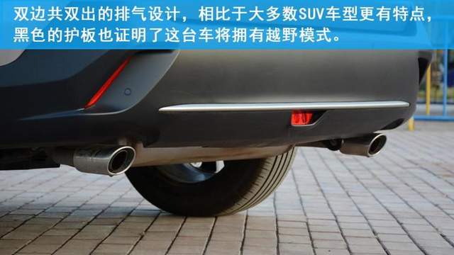 车身侧面一条凌厉的腰线直冲D柱,不仅打造出更加立体的造型,也增加了不少的运动感。车门下方的银色装饰,也更加证实了这是一台可以轻度越野的车型。前后轮尺寸均为225/60 R18的邓禄普SUV轮胎,搭配双五辐轮毂,带来了不错的视觉冲击力。而车尾部分的设计则在霸气中凸显了一份精致,两侧尾灯被一条贯穿的镀铬条连接,造型也格外的硬朗。牌照两侧的位置有两条隆起的设计,再次增加了尾部肌肉感。双边共双出的圆形排气,在城市SUV上并不多见,可见威兰达是想在城市SUV的基础上,做出更加年轻,更具运动属性的一台车。