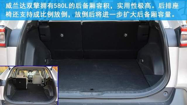 将车辆尾门打开,我们可以看到一个容积相当可观的后备箱,580L的容积在将后排座椅放倒后,还可以进一步扩大。后备箱空间规整,且拥有纯平的地板。