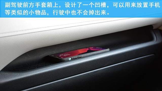 副驾驶前方的中控台区域采用了软质材料包裹,并在手套箱上方设置了一个小的置物区域,副驾乘客可以将手机等小件物品放在里面。后排座椅中间设置了空调出风口和USB充电口,即使是长途旅行也不必太过担心手机电量问题。
