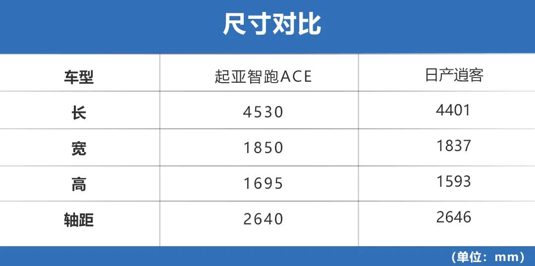 智跑Ace在尺寸上领先逍客,能带给用户更出色的空间舒适度,反观逍客车身尺寸延续老款,并未对空间做出升级。