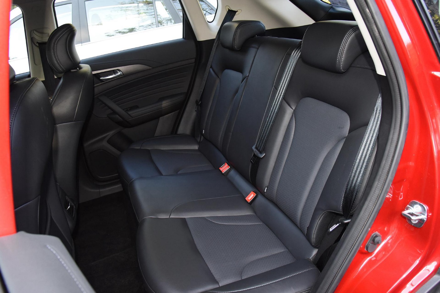 后排座椅材质和前排保持一致,空间表现还算不错,地板中间的轻微凸起,对舒适性影响不大,中高配车型还提供了空调出风口,但中间并没有配备头枕。