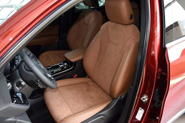 前排座椅采用了翻毛皮材质,座椅厚实宽大,在舒适性以及支撑性上都表现不错,同时,主驾驶电动座椅调节、加热功能都有装备。