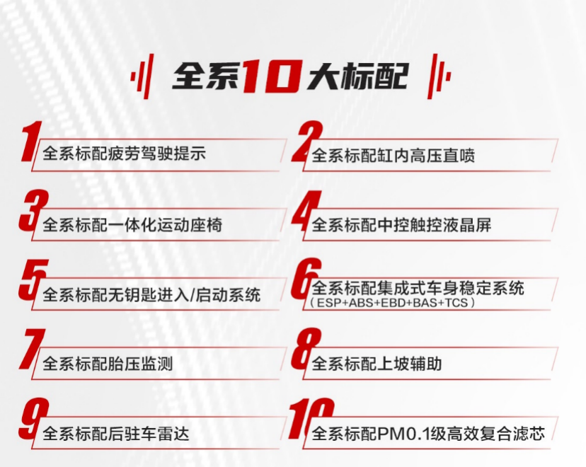 在逐级分析款型配置前,长安欧尚X5有十个标配来作为自己的产品卖点。具体项目见下图。由此来看6.99万的1.6L 手动精英还是比较有性价比的。当然前提是能开得了手挡车。