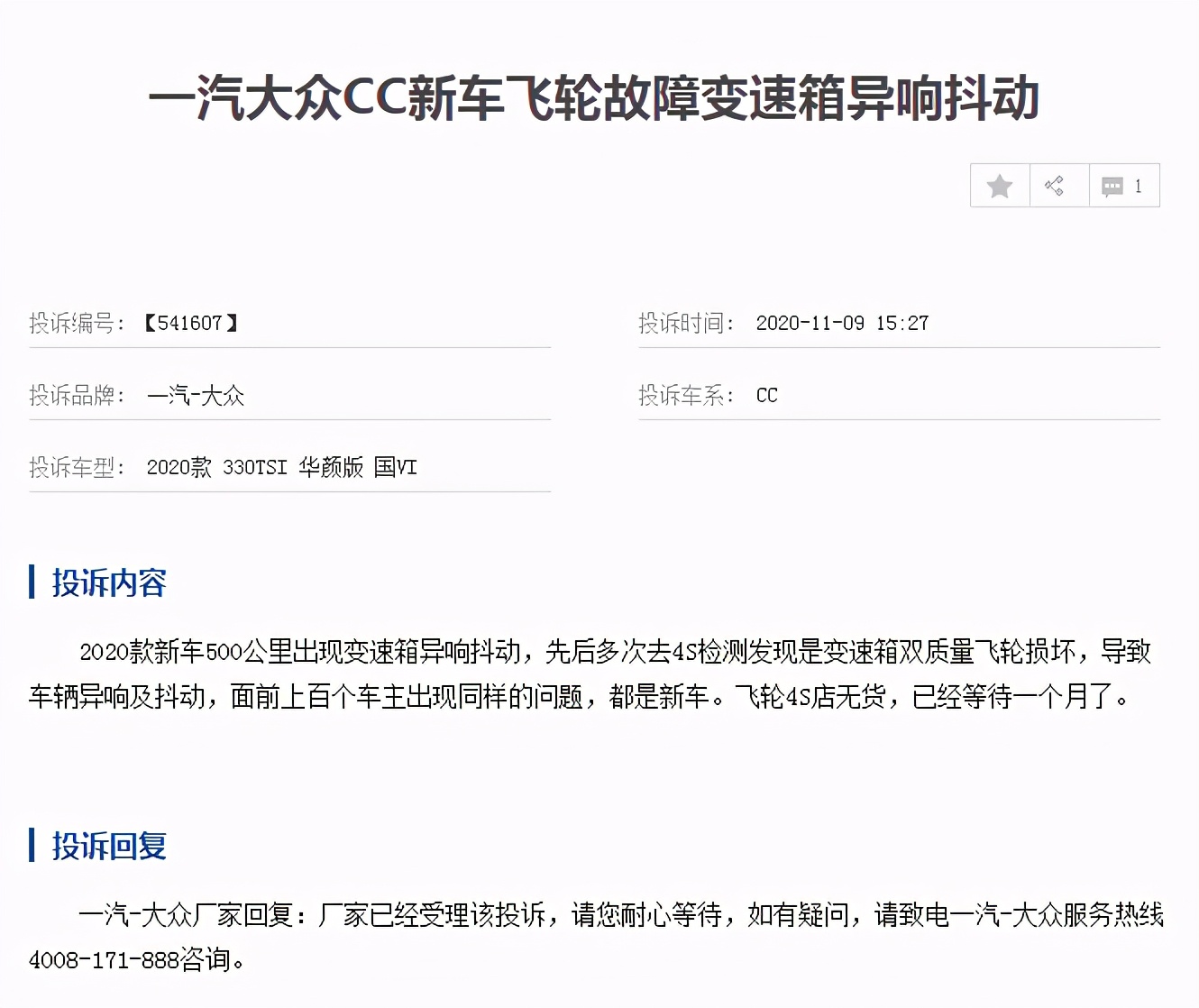一汽大众CC一直以来被称为“最美国产轿跑”,颜值的确在线,但是,问题同样也不少,尤其是发动机和变速器的问题最为典型,小编认为一汽该引起重视了。