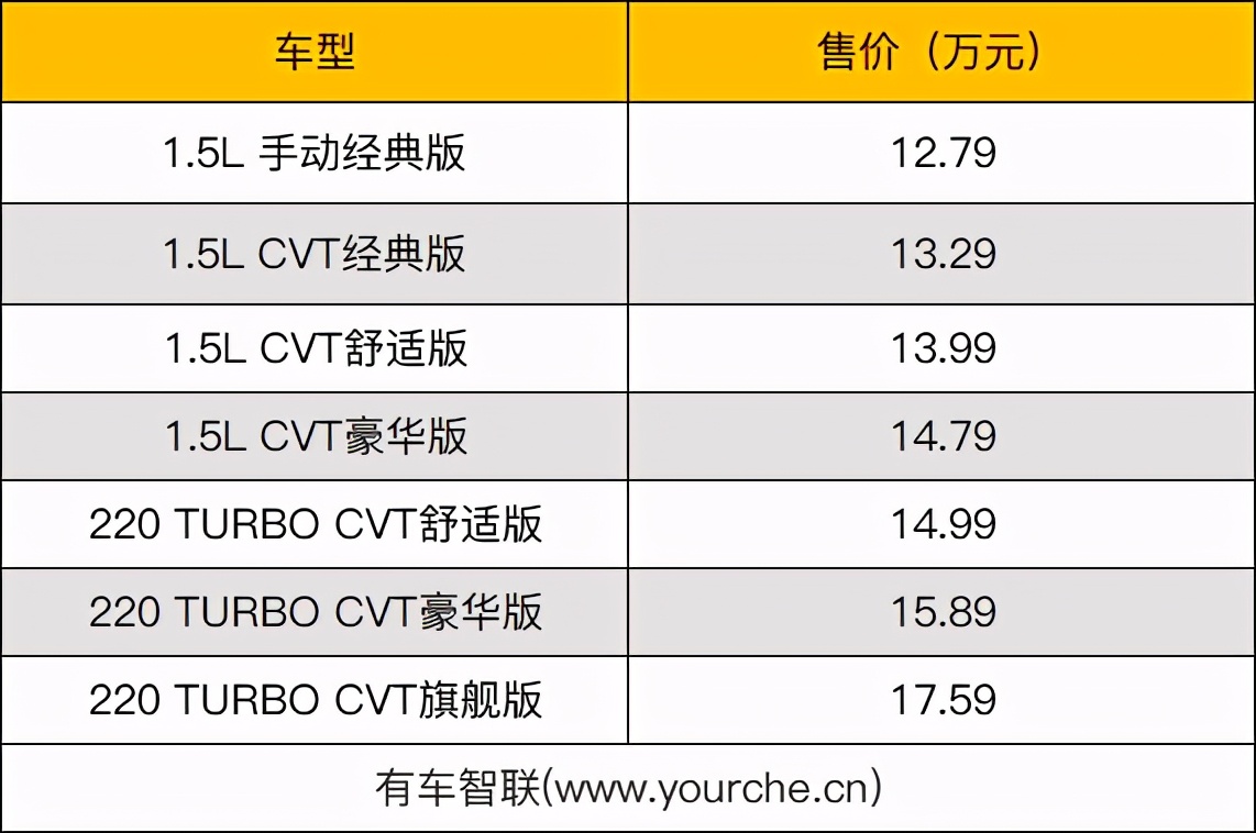 动力部分,新车依旧搭载1.5L和1.5T两种发动机。其中1.5L发动机的最大功率为131马力,峰值扭矩为155牛·米,匹配6速手动以及CVT变速箱。1.5T发动机的最大功率为177马力,峰值扭矩为220牛·米,匹配CVT变速箱。