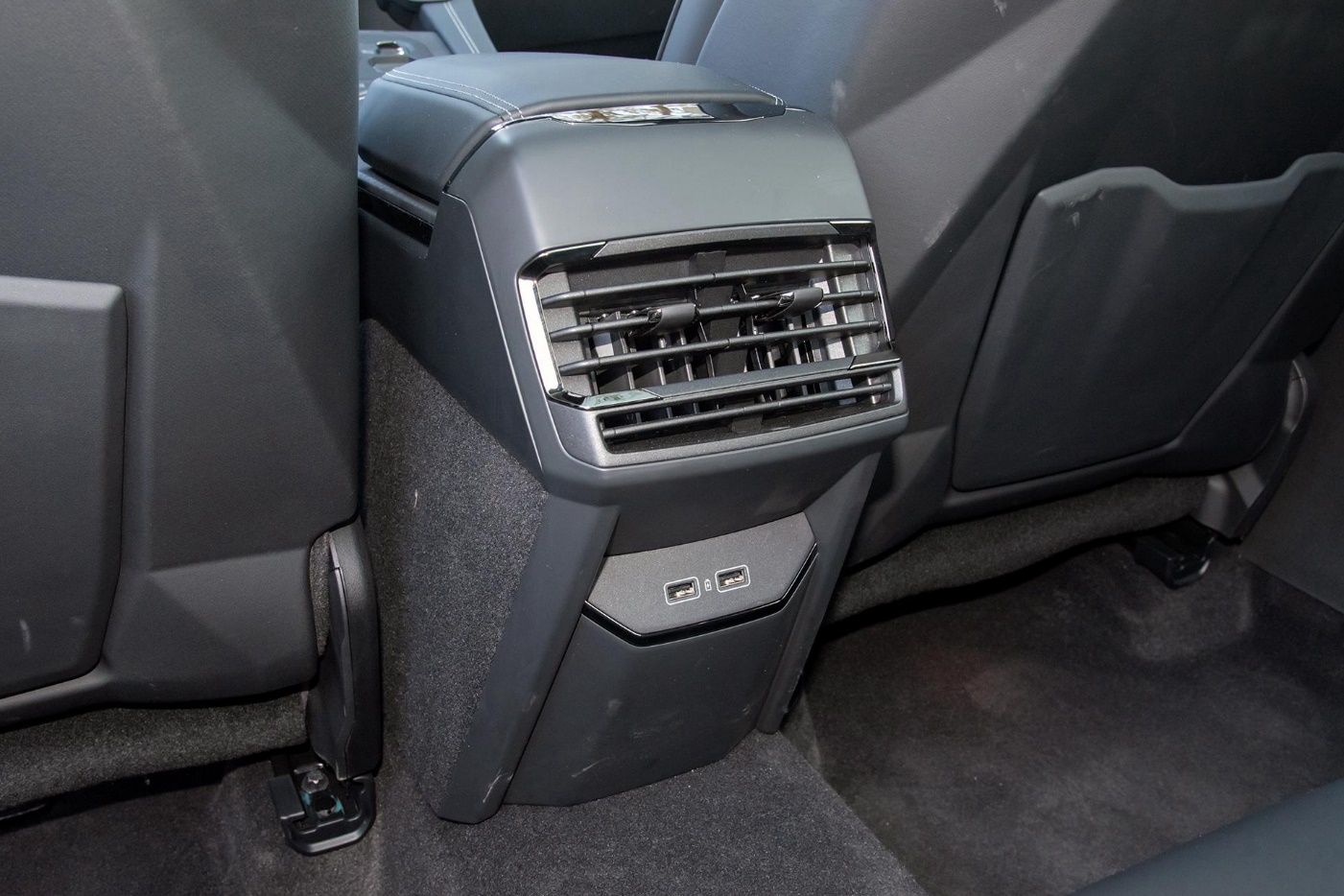 后排座椅材质和前排保持一致,并配有三个独立头枕及中央扶手,乘坐舒适和安全性还是很有保障,但后排纵向空间依然不够乐观,好在配备的座椅比较舒适。此外,还配备了独立空调出风口以及两个USB充电接口。