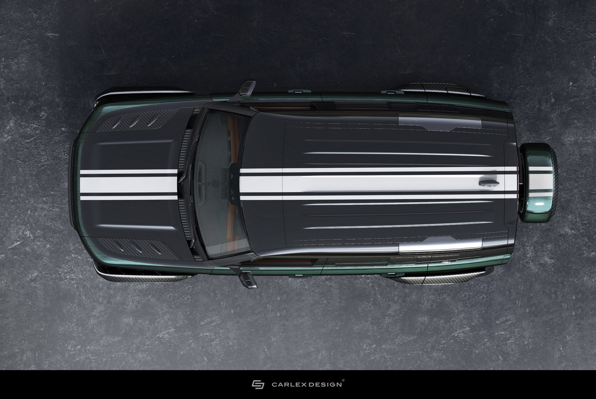 前保险杠采用了自己的碳纤维套件,而后部则为备胎提供了一个碳纤维帽,为了将一切联系在一起,路虎增加了英国赛车绿配色,并配以白色条纹和黑色点缀。