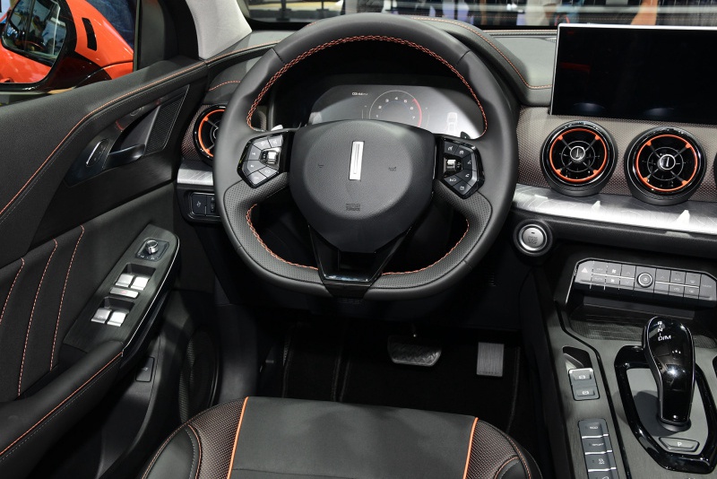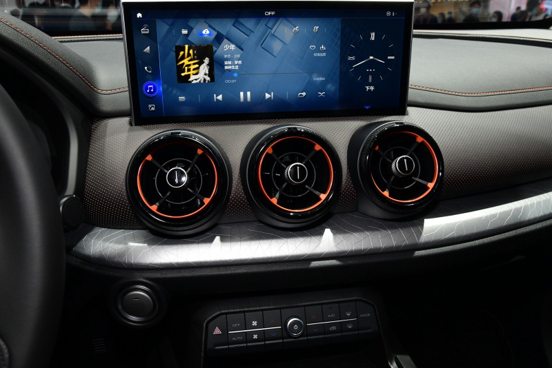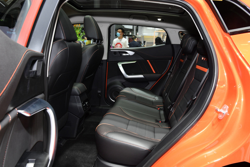 VV5元气橙版内饰同样与现款车型差异不大,中控台采用略微偏向驾驶员一侧的设计,方便驾驶时的操作。变化的地方是在:方向盘、空调出风口、座椅缝线等处使用了专属的橙色装饰,和车身橙色配色相呼应。