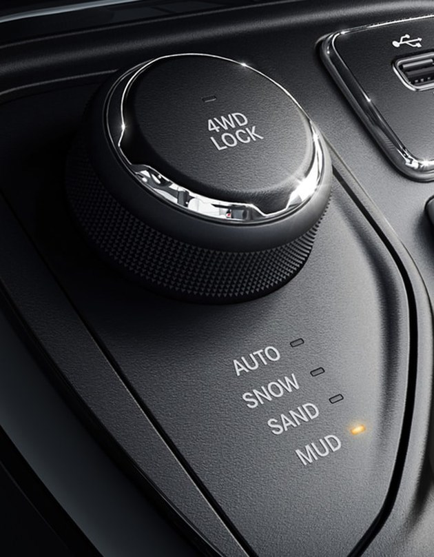 内饰部分依旧采用黑色的配色风格,车内大量使用黑色皮革搭配岩灰色缝线的组合,使车内更富质感。并且,行李厢还配备了易清洁的行李厢垫,装载户外用品的时候可以将易清洁那面向上,后期方便打理被弄脏的行李厢地板。同时,该车搭载有多模式4WD系统,包括“自动-雪地-沙漠-泥地”,8.4英寸VGA触摸屏显示器支持导航、CarPlay和倒车影像配置。