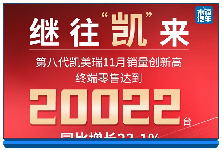 12月1日,丰田在中国的两个合资公司广汽丰田与一汽丰田就率先发布了销量。其中,广汽丰田表示,第八代凯美瑞11月销量为20022台,同比增长23.1%,刷新历史单月最高销量纪录。1-11月第八代凯美瑞累计销量166540台,并以12.5%的市占率在细分市场位居前列。