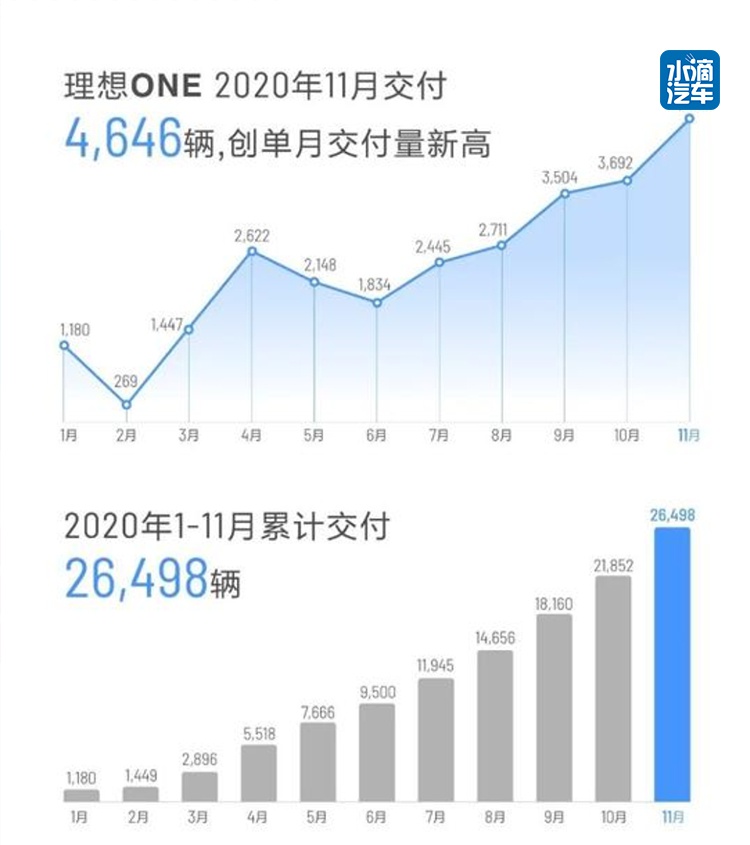 理想汽车也在月初交出了11月的销量成绩单,11月理想交付量为4646辆,环比增长25.8%,同时也是创下单月交付量纪录。今年前11个月,理想汽车交付量为26498辆。