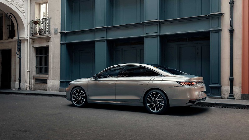 车身侧面,新车利用平直的腰线贯穿整个车身,在视觉效果上拉长了车身长度。并且新车采用了近几年非常流行的隐藏式门把手,使得车身侧面看上去更加的简约大气。同时,新车在后排还配备了隐私玻璃,有效保护了后排乘客在乘车过程中的私密性。