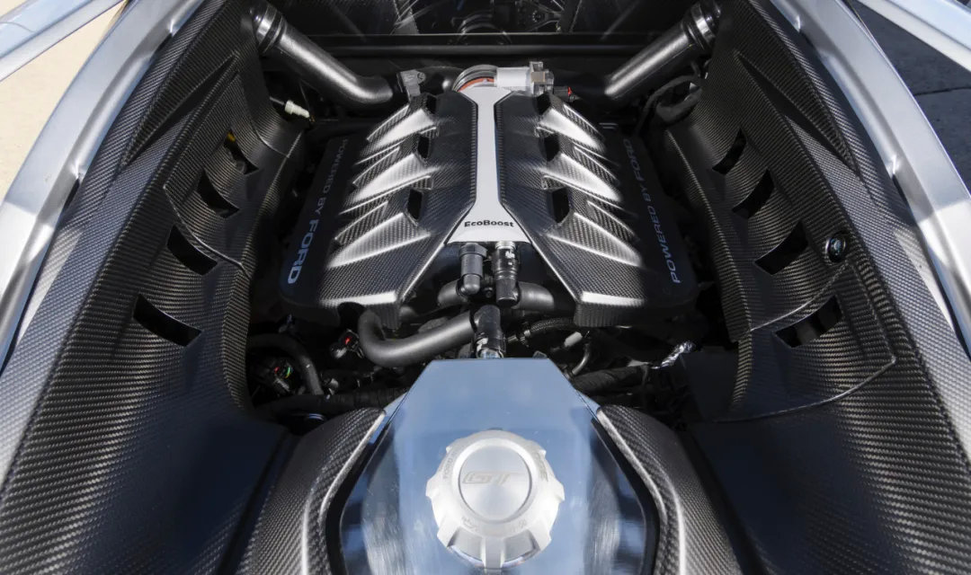 不过呢,既然是放在国宝级跑车上,那在性能方面势必要有进步才行。于是福特给GT上的V6发动机更换了更大的涡轮增压器、铝制进气歧管、定制的干式油底壳润滑系统、专用的凸轮轴以及更高强度的旋转和正时驱动组件。最终所呈现出来的,就是2017年推出的福特GT上的3.5T双涡轮增压V6发动机,能爆发出655马力、746N·m的傲人动力,比同年推出的F-150 Raptor高了足足200匹!