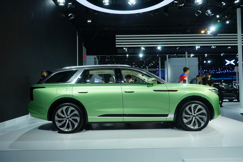 车侧部分,新车定位为大型SUV车型,巨大的车身造型突显气势,车顶和车身采用了分色处理,富有运动感与时尚感。车门处采用了隐藏式门把手的设计,减少了风阻又突显科技感。车门下方设计有黑色涂装和银色饰条,使车侧更加协调美观。车身尺寸分别为5209/2010/1731mm,轴距为3110mm。