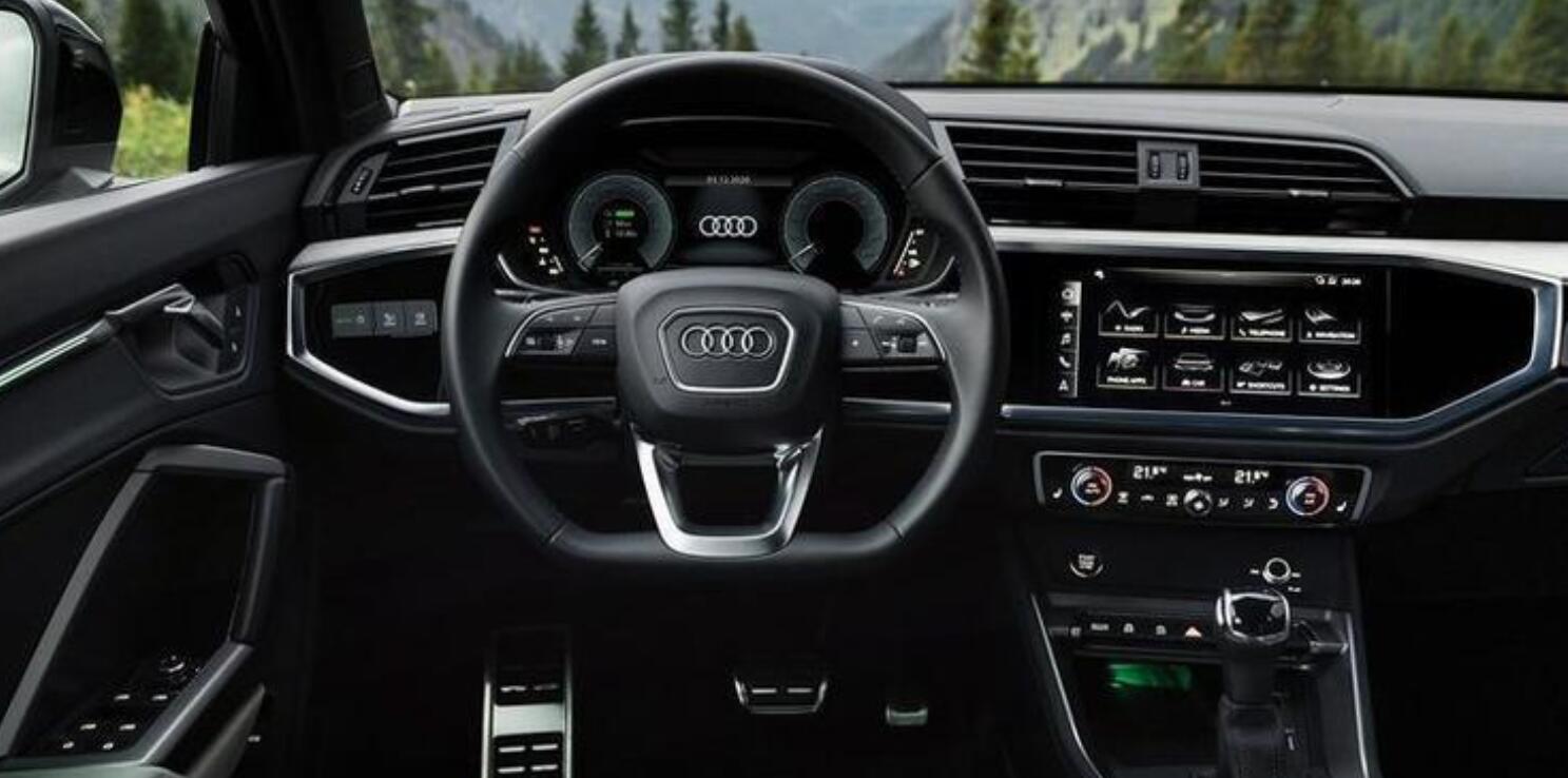 奥迪Q3 Sportback插混版车型在内饰上沿用了奥迪最新的家族式设计,配备了平底的多功能方向盘,并搭载了液晶仪表以及大尺寸中控屏幕,此外,在下方依旧采用了传统的机械式换挡机构。