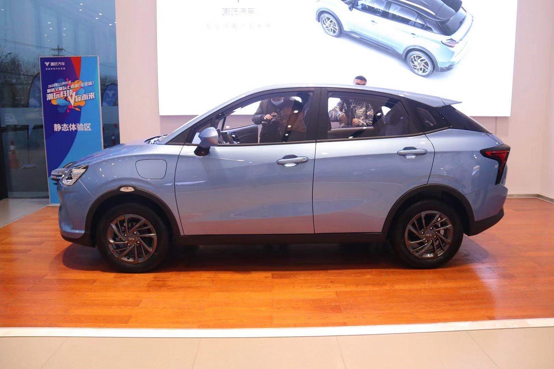 来到车身侧面,我们可以看到哪吒V采用了独特的下压式车顶设计,颇有几分跨界风格。而在车身尺寸方面,根据官方消息,新车的长宽高分别为4070/1690/1540mm,轴距为2420mm,定位于一款小型SUV。
