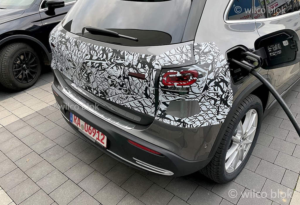 车尾造型并没有太多凌厉的线条,尾灯组同样处于伪装状态,但光源造型类似于一个“回”字。在副驾驶一侧的后翼子板上,新车设置有充电接口。与全新一代奔驰GLA不同的是,EQA将牌照架从尾门位置给下移到后包围上,并且底下也没有了排气。