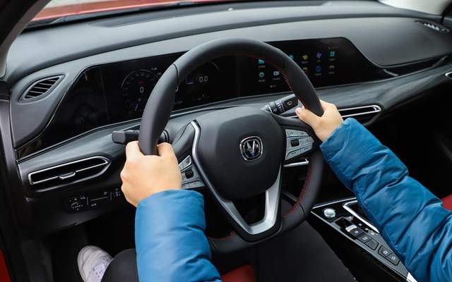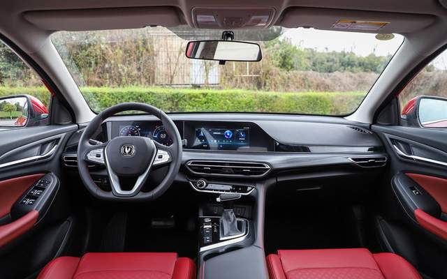 进入车内,逸动PLUS给人感觉十分的前卫与时尚,相比此前比较朴实的内饰设计,全新车型最明显的变化就是换上了相连的双10.25英寸显示屏,而这一改变也彻底提升了整车的科技感。加上中控台稍稍向驾驶员一侧倾斜,所以它所营造出来的视觉观感也是十分具有战斗气息的。