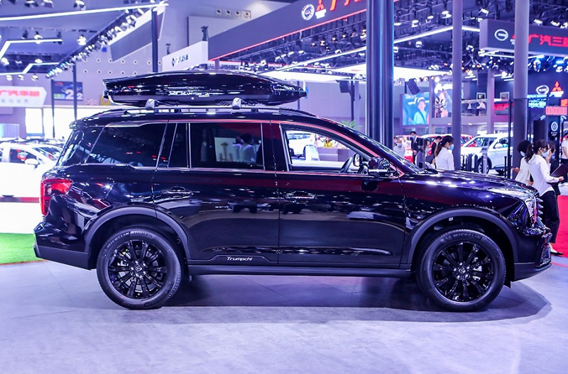 车身侧面,熏黑的大尺寸多辐式轮圈,搭配深灰色轮眉使新车看起来更具硬派气息与越野性能。同时,车顶上方的行李箱也使其看起来充满了家庭属性,在外出旅行时增加了车辆的装载力。除此之外,装饰在门边的饰板既提升了整车质感,又可以保护车身。