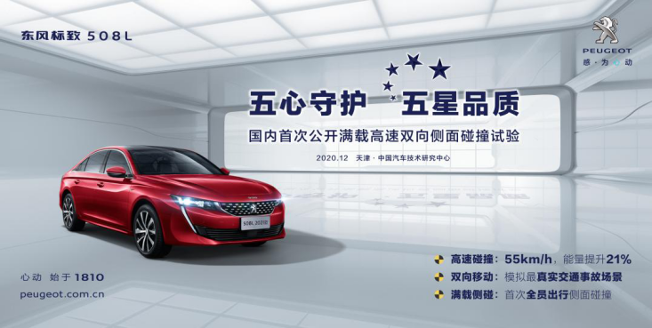 12月8日,东风标致508 (配置|询价)L在天津中国汽车技术研究中心碰撞试验室挑战“国内首次公开满载高速双向侧面碰撞试验”获得圆满成功,得分率达88.75%,现场评定成绩为优秀。