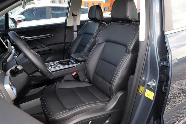 前排座椅采用仿皮材质,填充物厚实,对腰部侧向包裹表现也不错,但并不支持电动座椅调节。