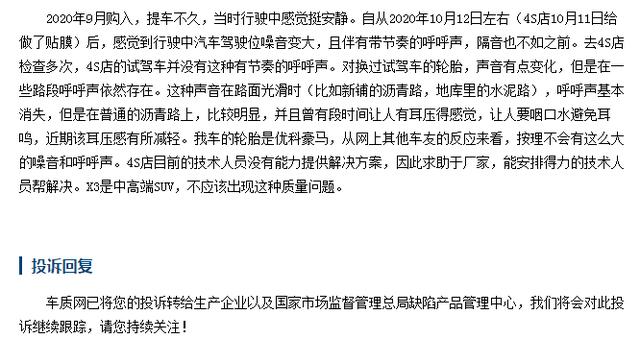 这一位2021款宝马X3的车主更是表示:提车没多久就出现了异响问题,花了大价钱买的豪华SUV,这样的品质,华晨宝马你好意思吗?是不是想学习一下一汽马自达,如何成为一台合格的"响马"?