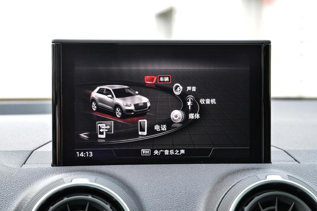 中控区域配备了8.3英寸悬浮式显示屏(低配版车型为7英寸),尺寸并不大,看起来小巧,内部搭载了奥迪MMI多媒体系统,功能上支持CarPlay、导航、语音识别控制等,还算够用,下方是两个对称式的圆形空调出风口看起来也比较精致。