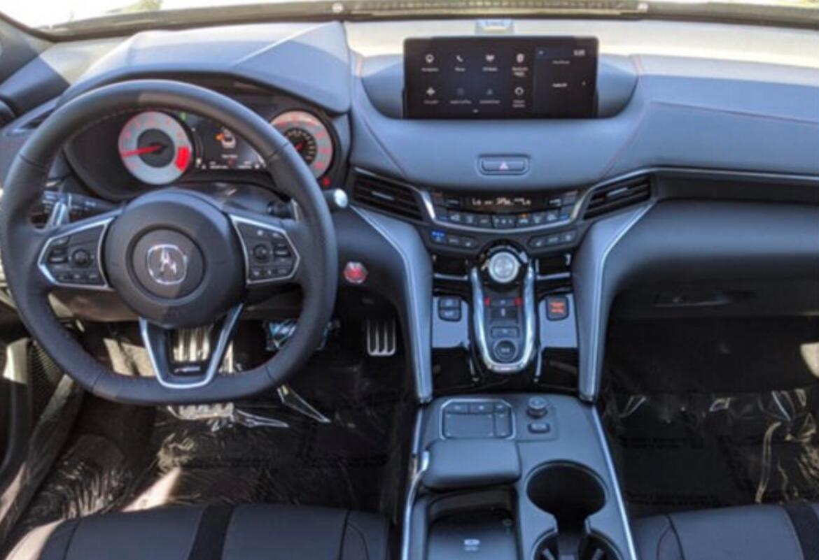 全新TLX在内饰设计上也进行了新的设计,本次实拍的车型配备了传统的组合仪表与悬浮式中控屏幕。中控台的造型非常具有层次感,并且保留了大量的物理按键,提高了日常使用中的便利性。