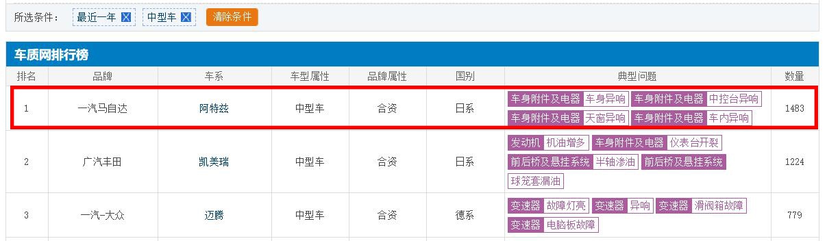 不过值得一提的是,虽然在美国马自达的可靠性获得了第一名,但是在国内马自达阿特兹所收到的异响投诉却是不断,甚至多次获得了月投诉榜第一名的好成绩,因此也就不得不说,看来美国和中国所生产的车型还是有很大的区别啊,大家要注意了。