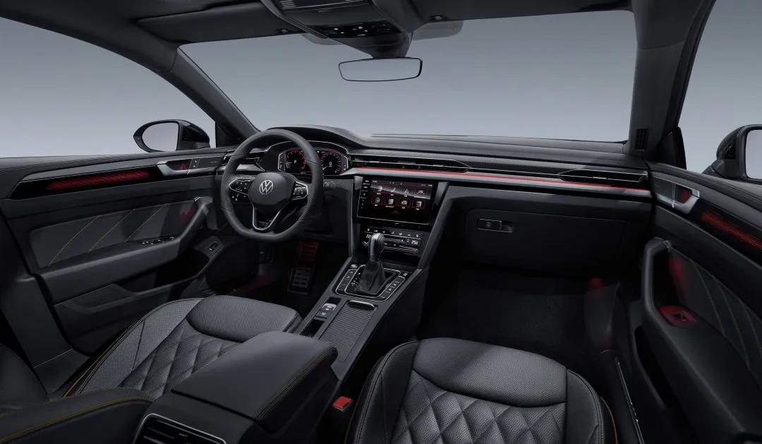 首先还是惯例,从三厢轿跑的入门级车型开始。三厢轿跑版的入门级车型叫 330TSI 炫目版,售价24.99万,搭载的配置有无边框车门、R-Line套件、大天窗、LED大灯、多功能后视镜、18英寸轮毂、全LED尾灯、前排座椅12向电动调节、内饰氛围灯、前后8探头雷达、一键启动、无钥匙进入、电动后备厢、9.2英寸中控屏幕、全液晶仪表、Alcantara材质座椅、定速巡航。从配置上来看,其实这个版本是对的起这个价格的,比较遗憾的是像自适应巡航、后泊车影像、前格栅氛围灯这些需要选装。