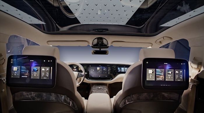 作为新车最大的亮点披露,本次恒驰1的内饰公布无疑是焦点信息。能够看到恒驰1的车厢内部采用的是浅色系搭配来凸显豪华感。目光往前移,超大尺寸的三联屏是非常经典的造车新势力设计风格,基本上所有的功能都被集成到了车机内,甚至于门边的车窗控制也用上了触控按钮。与此同时,前排座椅后方也提供了两块大尺寸的显示屏与前显示屏联动,乘客可以根据需求调整车厢内的娱乐功能,并实时浏览相关信息。