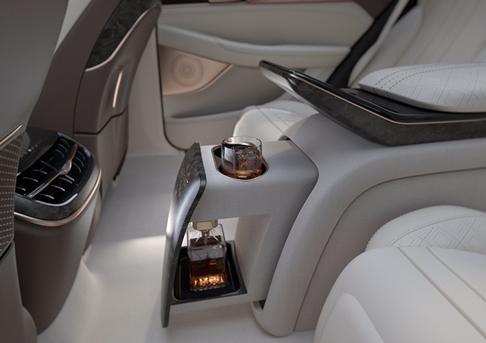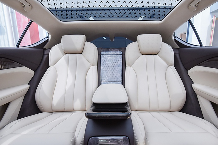 与此同时,作为一款定位D级轿车的车型,恒驰1采用了商务范十足的四座设计。后排搭载了两块非常宽大的座椅,相信对乘坐舒适性以及包裹性都能够有很大的提升。值得一提的是,恒驰1的后排中间部分还设计了一块储酒柜,这确实是充分考虑到了整车的商务需求。