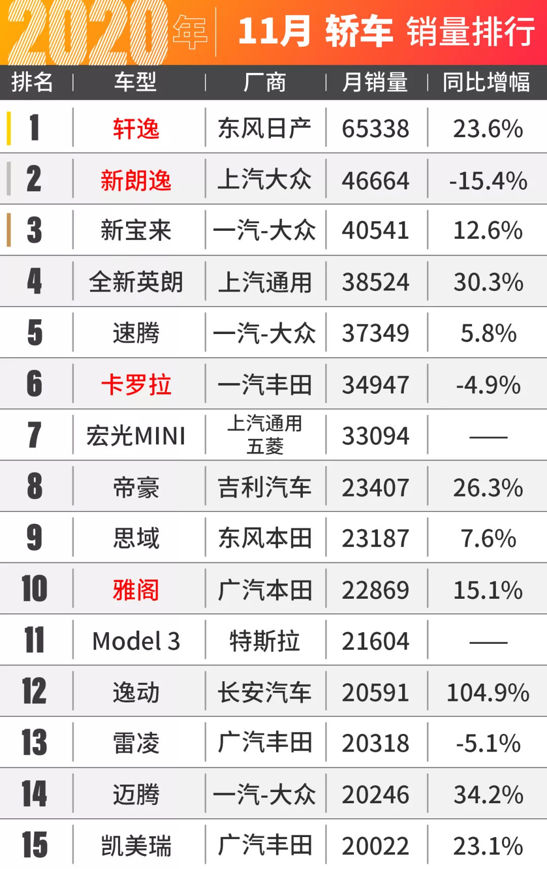 作为汽车销量冲刺的倒数第二个月份,11月的汽车销量榜给我们带来了太多惊喜。众多低价车型的热卖,也能发现年底购车的人群更多都是用来解决自己的出行刚需。如今临近年底,加之北京摇号新政的实行,相信在农历新年前的几个月,中国车市还会迎来一波上涨,让我们继续拭目以待吧!