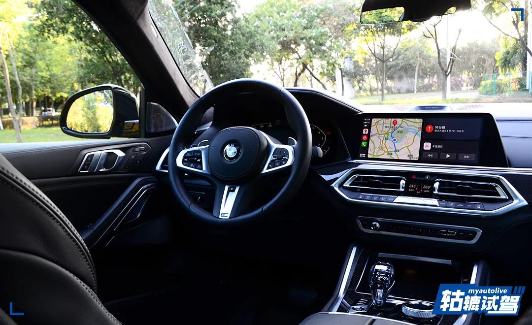 内饰方面简直就是“一绝”。虽然整体样式与全新X5一致,但车内使用了大面积的碳纤维饰板,整体风格简约,营造出性能车的整体感官,质感也十分出色。能触及到的地方也都用上真皮进行包裹,无论是缝线还是做工,都对得住“豪华”这个调性。