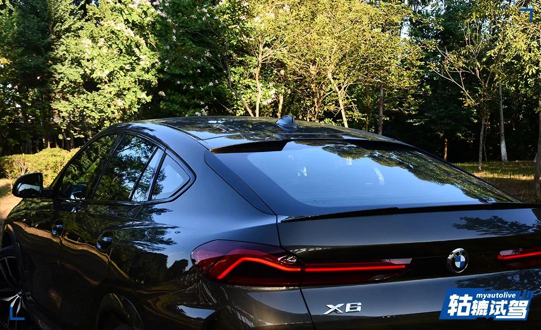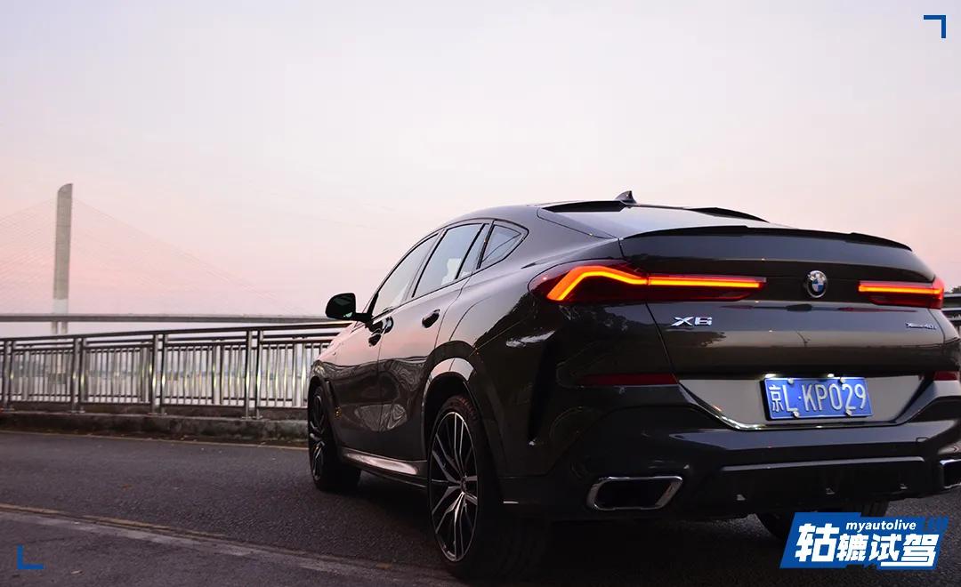 车身侧面和尾部才是轿跑SUV的重中之重。作为轿跑造型SUV的“鼻祖”,宝马X6正式诞生之前,没有人能想到SUV和Coupe之间究竟会有什么交集。新款X6依然延续了经典轿跑SUV的溜背设计,车身线条从车顶的B柱急剧下滑,几条腰线横贯车身侧面逐渐向上延伸至车尾,营造俯冲的态势。如果把车身腰线的下部盖住,它俨然就是一辆轿跑车。
