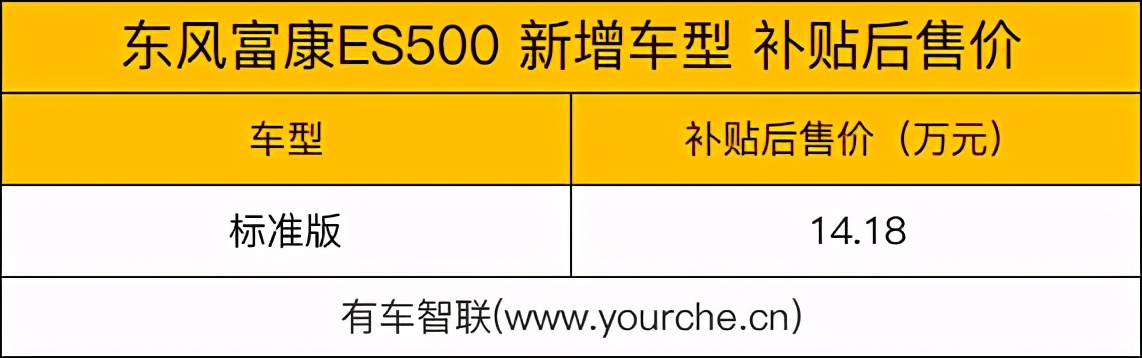 富康、桑塔纳、捷达这三款车被人们称为中国车市的“老三样”。富康原型车是风靡欧洲的雪铁龙ZX车型,1992年引进国内,后轮随动、前后轮悬挂等雪铁龙特有的底盘技术,在中国市场打下了良好口碑。日前,我们从官方渠道获悉,东风富康旗下ES500新增了一款标准版车型,新增车型售价为14.18万元,与现款车型相比,新车主要针对配置进行了调整,同时续航里程也由401km提升至420km。