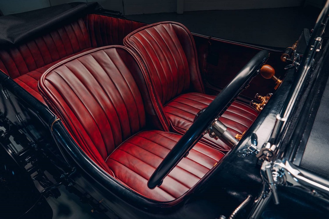内饰方面,新车采用了四辐式方向盘造型,并且喇叭按键被放置在整个方向盘中央。同时,车内座椅皮质源自Bridge of Weir皮革公司生产的牛血红真皮内饰,并且内饰座椅造型选用原始车型的设计,内部填充了共计10公斤的天然马毛。