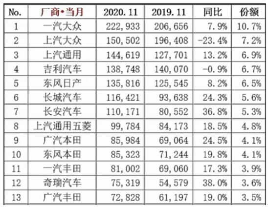除了自主品牌,榜单下,上汽大众看了看自己同比下滑23.4%的成绩(196408辆),然后望向第一名一汽大众,满脸羡慕嫉妒恨,心想:要不是我帕萨特 (配置|询价)那一大题失误,谁第一还真不一定。亡羊补牢,为时不晚,在12月初,上汽大众终于将帕萨特这一拿分大题学得滚瓜烂熟,测试拿优。12月的考试必然拿高分,那我们就一起期待帕萨特的翻身之战。