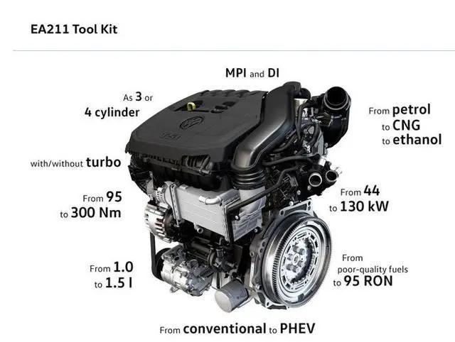 而高功率版本最大功率是110kW,并且拿掉了VTG可变截面涡轮技术和米勒循环技术。另外,EA211 1.5T发动机还能兼容多种燃料,从普通的无铅汽油到乙醇汽油甚至到CNG天然气都可以使用,只不过最终引进国内的话预计还是和现在一样只有汽油版本。