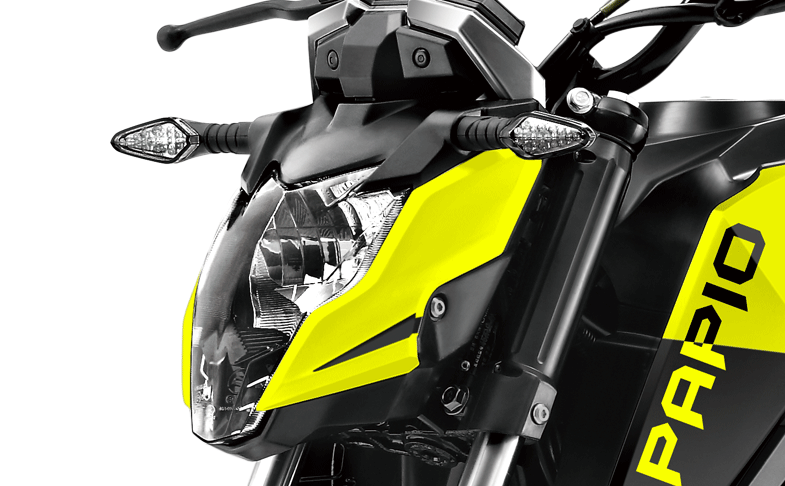整车体型小巧伶俐给人一种非常萌的感觉,同时它车身线条设计得又很犀利硬朗,呈现出一种英姿飒爽的感觉,而且前头部分延续了NK家族的龙头设计,让它看起来虽然小,但感觉战斗力十足。