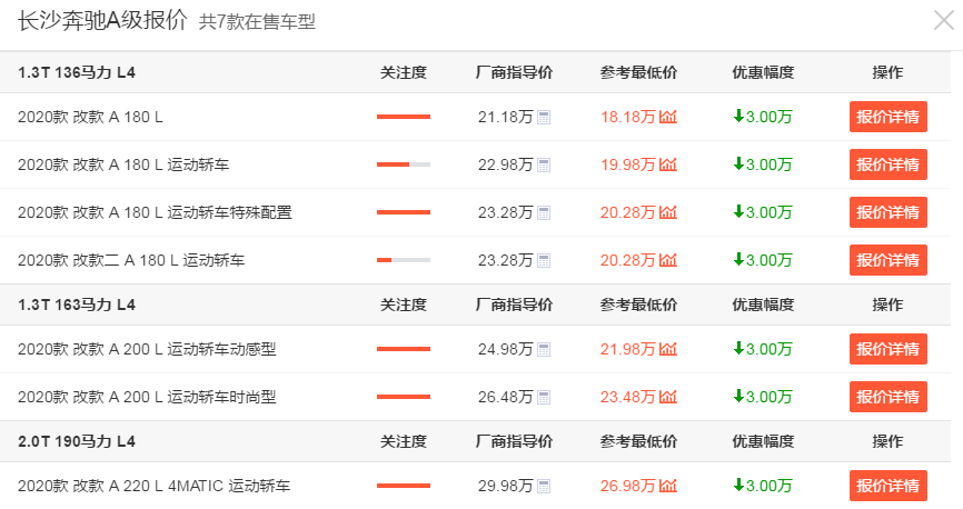 奔驰A级,指导售价:21.28-29.98万元,优惠幅度:3万元,这样的售价区间以及优惠幅度,对于预算不足,想买一台奔驰车的朋友来说,无疑是非常好的选择之一。然后,你看它的外观设计,依旧是具有满满的豪车气势,尤其是前脸满天星的镀铬装饰,硕大的车标镶嵌其中,让人一看就知道这是一台奔驰车,极具品牌辨识度。对于这样的设计风格,小编认为奔驰A级轿车整体非常的时尚精致,更加符合女性朋友开,不知道你们怎么看。