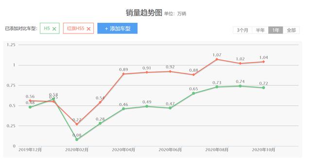 不得不承认,红旗自2019年以来,它的增长势头一直都很猛,先是在2019年提前完成10万辆的年度销量目标,紧接着就公布了2020年20万辆的销量目标。