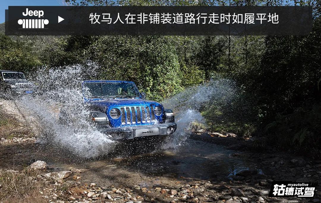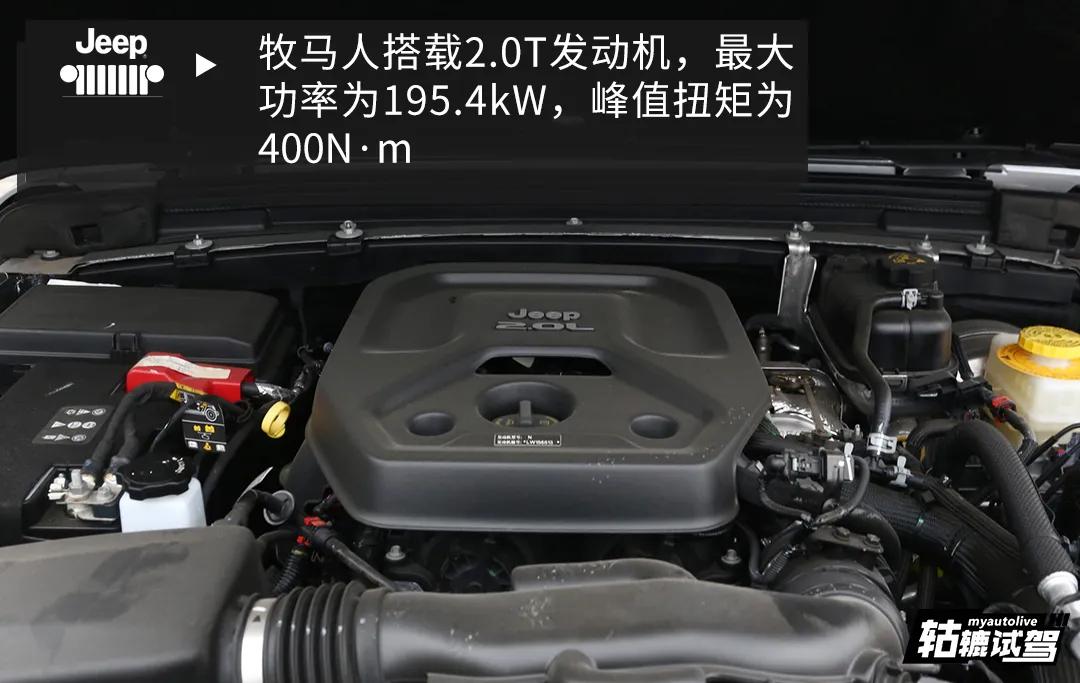 试驾车的越野性能还不是最强的。牧马人有撒哈拉和卢比肯两个版本,前者只有分时四驱系统,后者则在撒哈拉的配置基础上还有前后两把锁和横向稳定杆断开机构,越野性能更强悍。动力上两个版本都是搭载2.0T发动机,最大功率为195.4kW,峰值扭矩为400Nm,传动系统匹配一台8挡手自一体变速器。