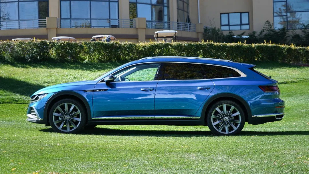 侧面线条非常修长低矮,高配车型19英寸的旋风式轮圈也让整车的下盘视觉极为扎实。虽然国产后的CC猎装版增加了一圈黑色塑料跨界包围,车身高度相比海外版也有所增加,但整车的侧面看起来依旧是比较协调的。