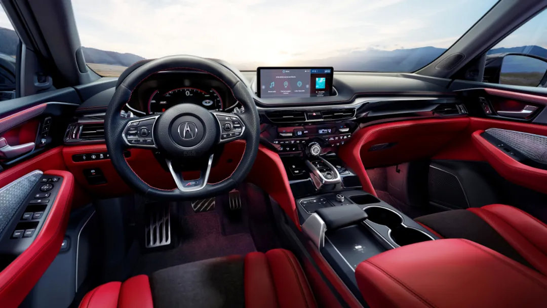 与其他讴歌车型一样,全新MDX同样提供了更偏向运动的A-Spec版本,这个版本有点类似于宝马的M运动套装、奥迪的S-Line等设计,整车采用熏黑装饰件,搭配鲜艳的红色车漆更有辨识度。