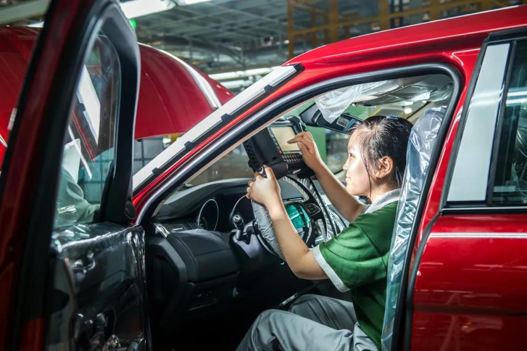 在该车间内,拥有全自动天窗安全机器人、门胶条自动镶嵌设备、全自动底盘合装台等领先智能设备,其中全自动整体合装采用的是目前国际最先进的整体合装模式,底盘与车身全自动合装,定位精度和装配稳定性更高。