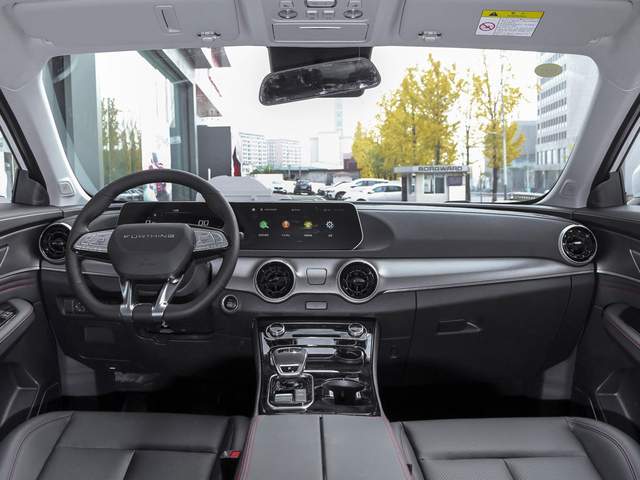 风行T5 EVO内饰设计并没有外观那么时尚,整体比较简约,不用大量弧线的应用让内饰层次感比较十足,同时新车配备双10.25英寸大屏,科技氛围也营造的不错,不过整体中控台的设计缺少一点精致感。