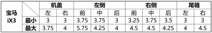 数据偏差较大的只有左前门位置,下方塑料板之间的间隙明显比车门与翼子板之间的间隙大,但是宝马iX3仍然是同场6台车之中塑料件和镀铬件匹配精度做得最好的。在对外部供应商的质量控制方面,宝马做得明显比造车新势力更好。
