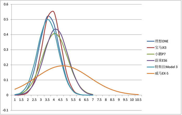 宝马iX3>理想ONE>特斯拉Model 3>蔚来ES6>小鹏P7>威马EX5
